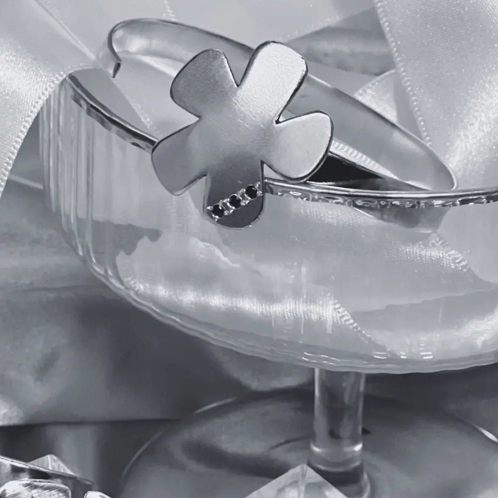 En argent massif, avec ses spinelles noires, cette pièce raconte une histoire, un mystère. Chaque pétale évoque une éclosion lumineuse. La votre ....