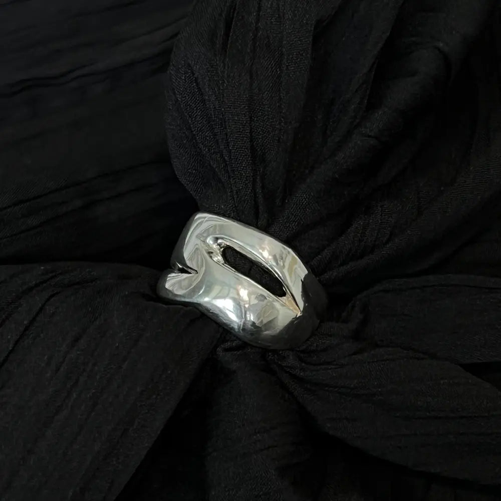 La subtilité de ses courbes et l'ouverture centrale ajoute une touche de mystère et de profondeur, faisant de cette pièce un véritable poème en argent......