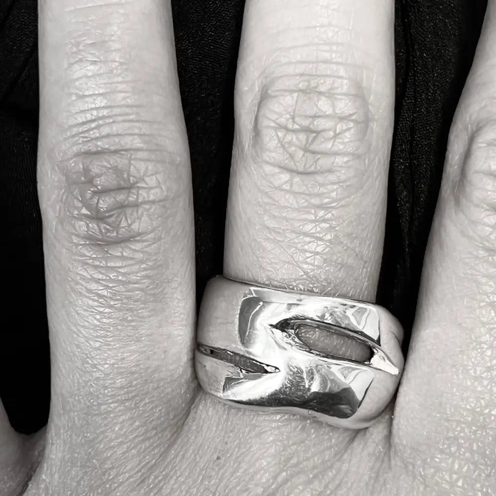 Évadez-vous dans un univers d'élégance contemporaine avec cette somptueuse bague en argent véritable. Sculptée avec une précision remarquable, son design organique évoque un mouvement fluide, comme une brise douce qui traverse l'âme.